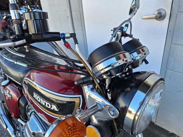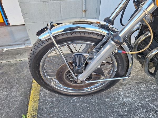 Overall very original, with a few changes, 16″ rear wheel, no center stand, braded brake line and new later model reservoir