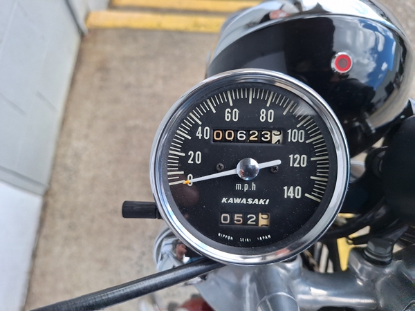 Frame # W1F-07202 and Engine # W1E-53472 showing 623 miles