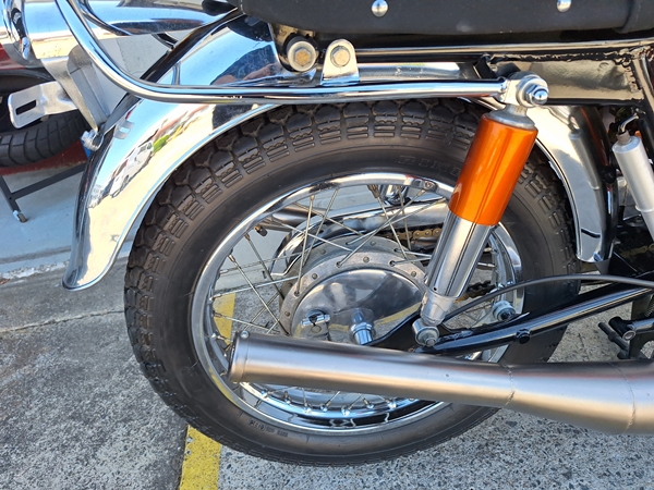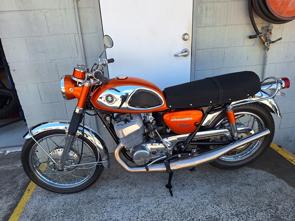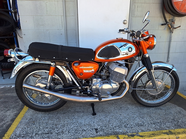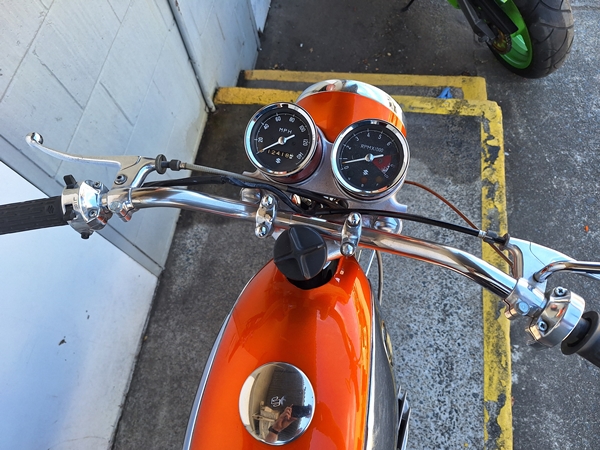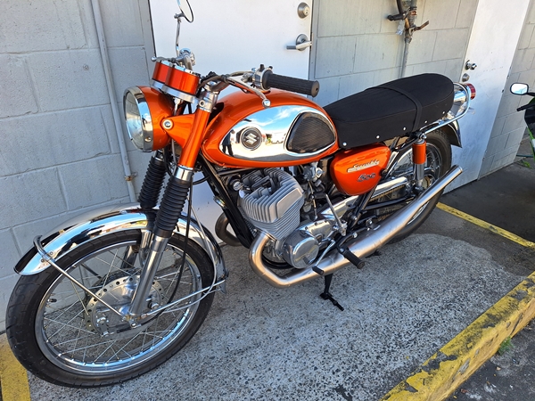 Immaculate restoration, apart from the exhaust chambers it is near perfect, starts, runs and rides well