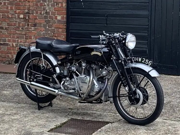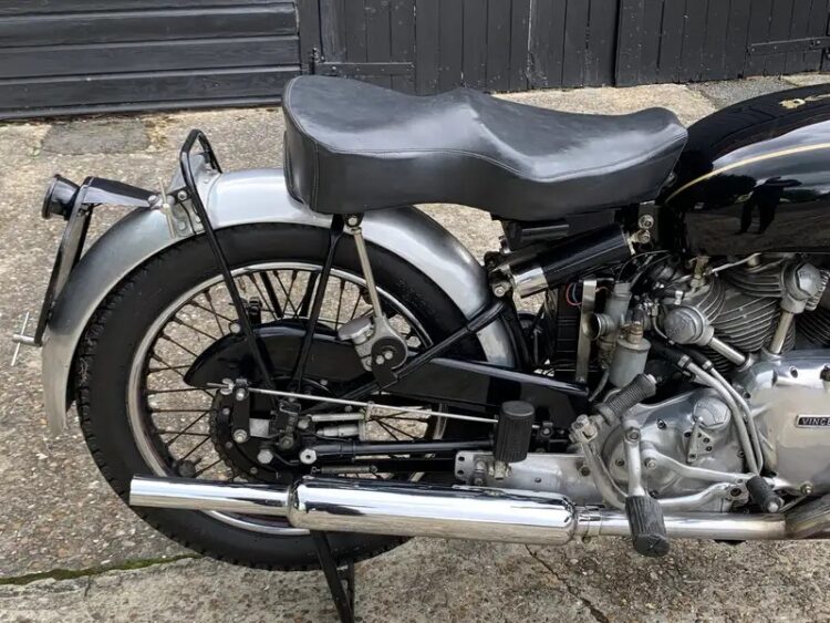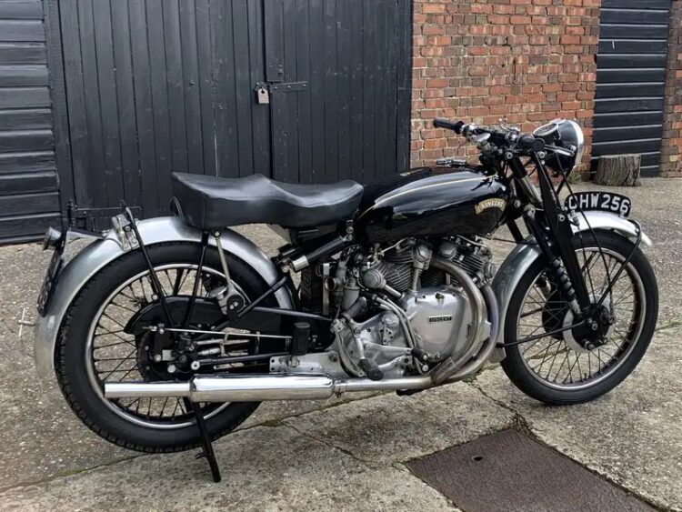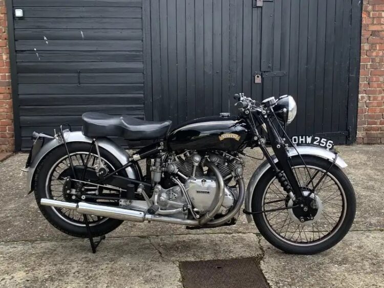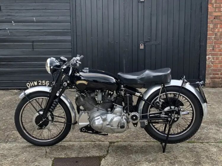 Just arrived from the UK is this Series C 1951 Vincent Rapide. Triple matching numbers: Engine # F10AB/1/7513 and 1900 different UFM and RFM RC9413F. This bike was sold new on 21/8/1951 and registered with plate OHW256 which it still has. Comes with factory build sheet and VOC Dating Certificate. Family owned since 1993 and had a full service and new tyres in 2023. Starts first kick, runs and rides very well. Our test rides have shown no issues. Cosmetically excellent. This is a very unique opportunity to own a correct Vincent. Please ask any questions, inspections welcome, ask about our door to door delivery options. Phone 0434 005 103 or email mcmuseum54@gmail.com